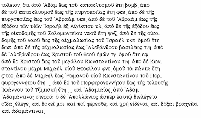 ΓΕΝΕΣΙΣ ΚΕΦΑΛΑΙΟΝ Β΄ 1 'ΚΑΙ συνετελέσθησαν ο ουρανός και η γη και πας ο κόσμος αυτών. 2 .... 7 και έπλασεν ο Θεός τον άνθρωπον, χουν από της γης, και ενεφύσησεν εις το πρόσωπον αυτού πνοήν ζωής, και εγένετο ο άνθρωπος εις ψυχήν ζώσαν. ... 18 Και είπε Κύριος ο Θεός· ου καλόν είναι τον άνθρωπον μόνον· ποιήσωμεν αυτω βοηθόν κατ ‘ αυτόν. .... · τω δε Αδάμ ουχ ευρέθη βοηθός όμοιος αυτω. 21 και επέβαλεν ο Θεός έκστασιν επίτον Αδάμ, και ύπνωσε· και έλαβε μίαν των πλευρών αυτού και ανεπλήρωσε σάρκα αντ ‘ αυτής. 22 και ωκοδόμησεν ο Θεός την πλευράν, ην έλαβεν από του Αδάμ, εις γυναίκα και ήγαγεν αυτήν προς τον Αδάμ. 23 και είπεν Αδάμ· τούτο νυν οστούν εκ των οστέων μου και σάρξ εκ της σαρκός μου· αύτη κληθήσεται γυνή, ότι εκ του ανδρός αυτής ελήφθη αύτη· 24 ένεκεν τούτου καταλείψει άνθρωπος τον πατέρα αυτού και την μητέρα και προσκολληθήσεται προς την γυναίκα αυτού, και έσονται οι δύο εις σάρκα μίαν. 25 και ήσαν οι δύο γυμνοί, ό τε Αδάμ και η γυνή αυτού, και ουκ ησχύνοντο... '